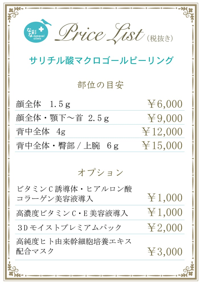 マクロゴールはサリチル酸が皮膚深部に浸透するのを防ぐため、瘢労痕形成を起こすことなく、毛穴の奥まで含めた皮膚の角質層だけを剥離することができます。もちろん全身的な副作用もありません。